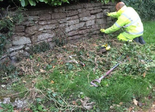 We created a straight-edged flowerbed, dressed with soil containing coarse sand and compost and planted perennial plants to create a cottage theme. The remaining front Laurel hedge was neatly toped and reduced to a level of four feet /1.2 metres to allow light in to the front of the property. The ivy was removed from the retaining wall to reveal the ornate stone work.